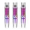 斬新なつや消しコーティングと精密加工を融合させた、ダーツをしっかりと固定することができます。中央に適度なシャークカットを採用し、また後方部分は安定したグリップが保てるよう窪みをつけ、入った網形状の細いカットは様々なグリップにも対応している。いかなるプレイヤーも試してみて扱いやすい良いバレルかと思います。