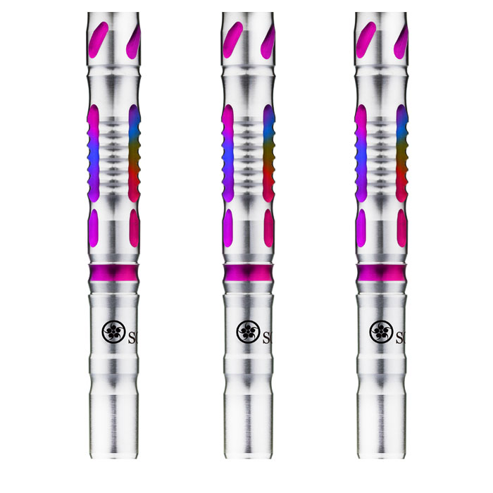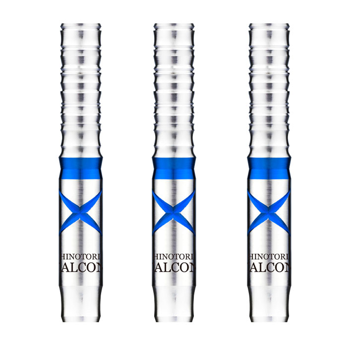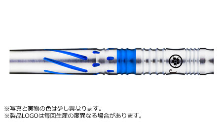 ブラックとブルーの美しいコーティングされている、飽きのこないHINOTORIデザインにプラス、よりクールな印象をもたらせた。フロント部分に滑り止めのUカットに配置、また、後方エリアにブラック交互に配置されたピクセルカットも特徴的。バレル全体に入ったカットは、ダーツを放つ瞬間に指が滑ってしまうのを防いでくれます。