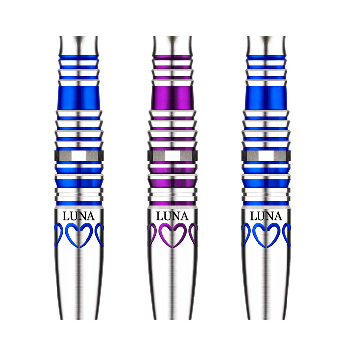 フロント部分にハート型の可愛い模様が描かれ、中部に入った網形状の細いカットは、ダーツをしっかりと固定することができます。後部に螺旋を細かくすることによりさらに手になじみやすく、見た目の美しさだけではなく中指や薬指を添えた時にも安心感を得られるよう設計。