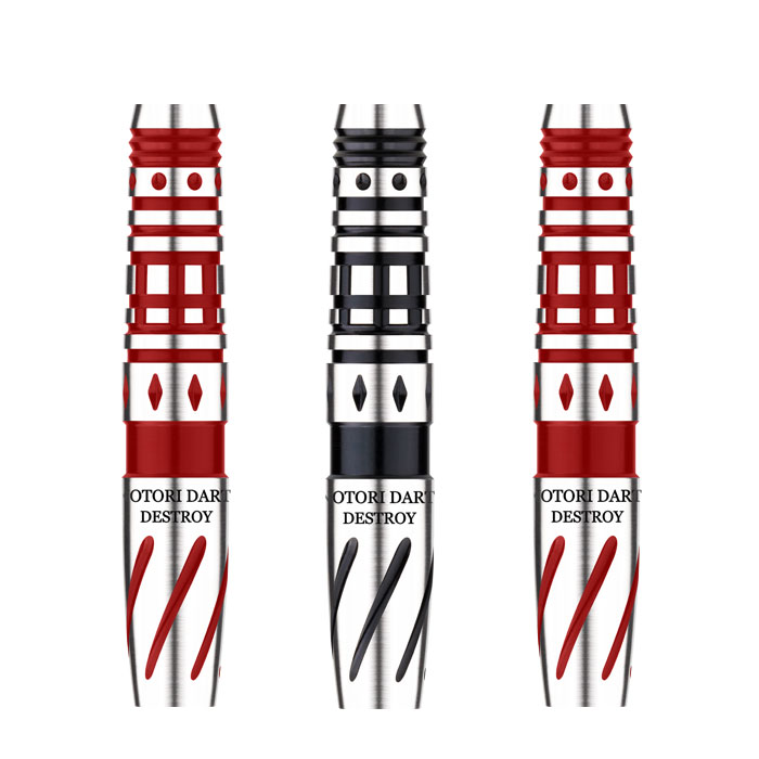斬新なつや消しコーティングと精密加工を融合させた、ダーツをしっかりと固定することができます。中央に適度なシャークカットを採用し、また後方部分は安定したグリップが保てるよう窪みをつけ、入った網形状の細いカットは様々なグリップにも対応している。いかなるプレイヤーも試してみて扱いやすい良いバレルかと思います。